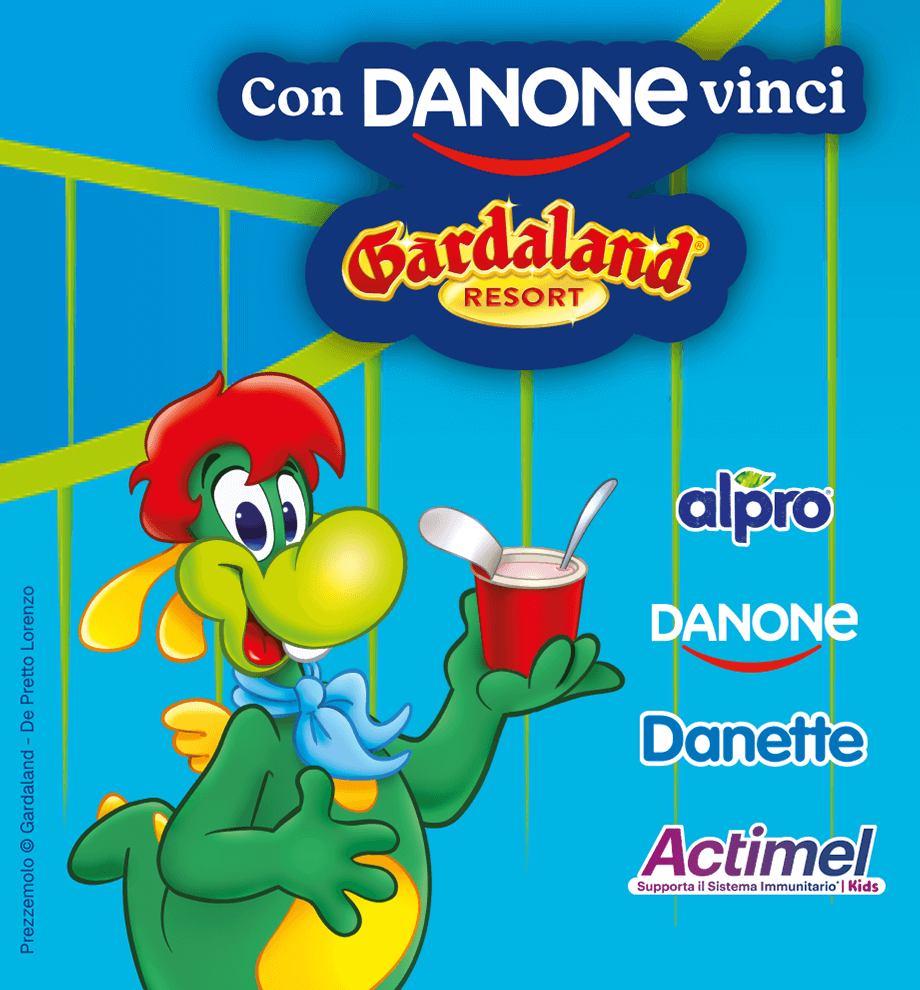 Concorso misto “CON DANONE VINCI GARDALAND” valido dal 01/02/2026 al 30/06/2026 nei punti vendita fisici ed i relativi e-commerce del canale moderno sul territorio nazionale italiano e nella Repubblica di San Marino (esclusi i punti vendita ed i relativi siti e-commerce con sede nei comuni di Alatri (FR) , Grumo Appula (BA), Veroli (FR) e Canicattì (AG)). Acquista almeno € 5,00 di prodotti promozionati (al netto degli eventuali sconti) in un unico documento d’acquisto, registrati su www.concorsi.vividanone.it e carica il documento d’acquisto. Potrai ricevere n. 1 ingresso a Gardaland Park a fronte dell’acquisto di 2 biglietti interi a tariffa diurna. Inoltre, potrai partecipare all’estrazione finale di n. 1 soggiorno per 4 persone a Gardaland. Montepremi concorso € 2.324,00 IVA inclusa dove presente. Partecipazione riservata ai maggiorenni residenti/domiciliati in Italia e nella Repubblica di San Marino.