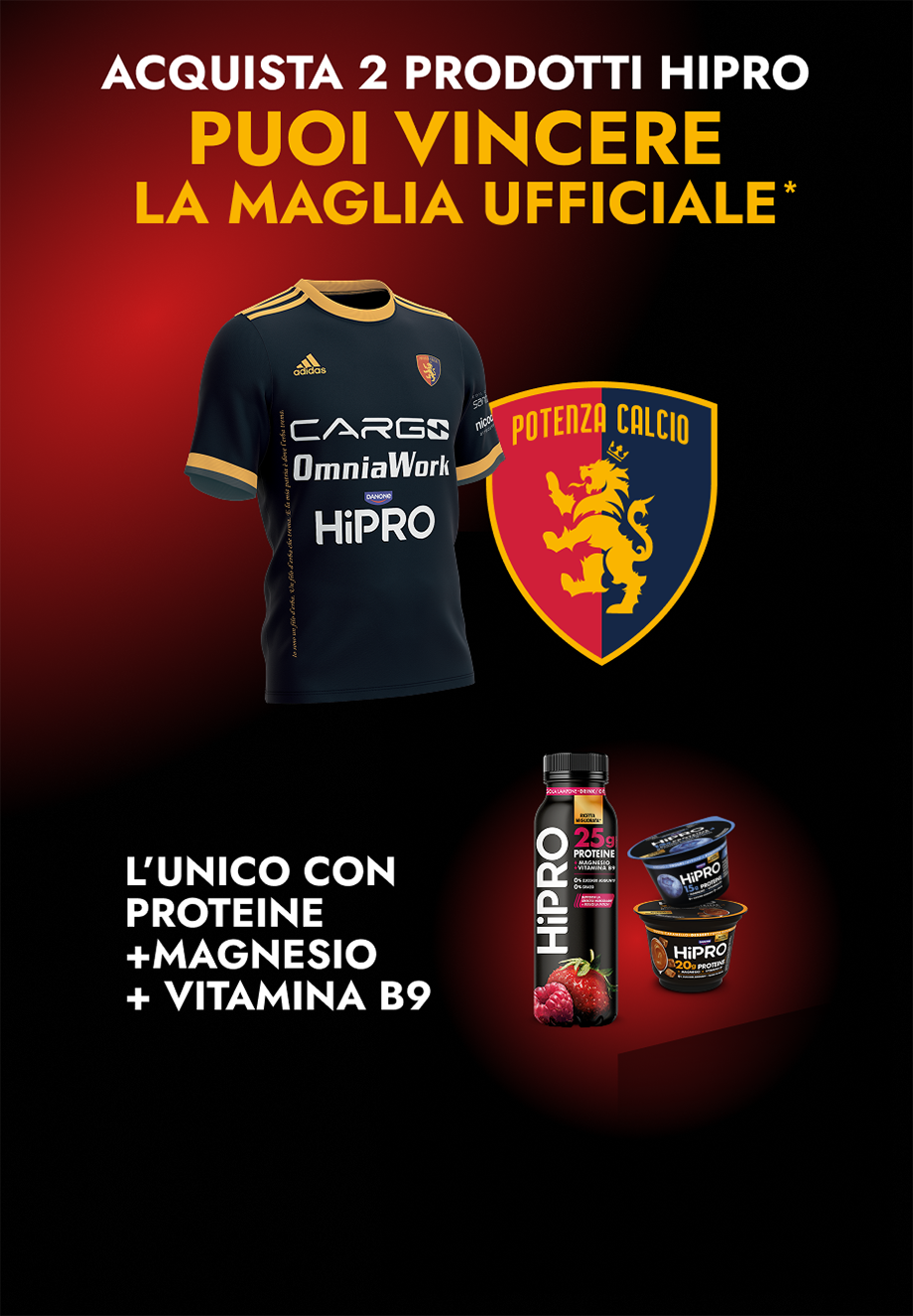 Acquista 2 prodotti Hipro, puoi vincere la maglia ufficiale del Potenza Calcio